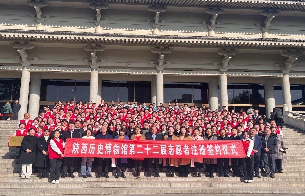 2023年11月19日,陕西历史博物馆第二十二届志愿者注册签约仪式在馆内二楼会议厅隆重举行,陕历博党委书记、馆长侯宁彬,我校团委书记王娜、中国语言文学学院党委副书记夏玉瑜和省内部分高校师生志愿者代表参加仪式。校馆签订“2024年大学生志愿者工作协议书”,我校获评“2023年陕历博优秀志愿者团队”,亚非学院介仪泽同学荣获“十佳志愿者”,欧洲学院周颖杰同学荣获“最具奉献志愿者”,中国语言文学学院韩奇辰等5名同学荣获“调查问卷优秀志愿者”,英文学院刘钰熙等17名同学荣获“优秀志愿者”荣誉称号。
