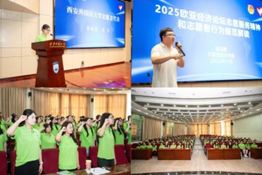 为保障论坛顺利举行,我校积极配合团市委及欧亚经济论坛秘书处相关要求,精心遴选英语、俄语、意大利语、法语等多个专业志愿者,同时联合团市委组织岗前通识培训,内容涵盖志愿者行为规范、外事纪律外交礼仪、应急事件自我保护、西安市历史沿革与城市发展及爱国主义教育等多个核心模块,旨在全面提升志愿者的综合服务能力和专业素养,为高质量完成志愿服务工作奠定基础。
