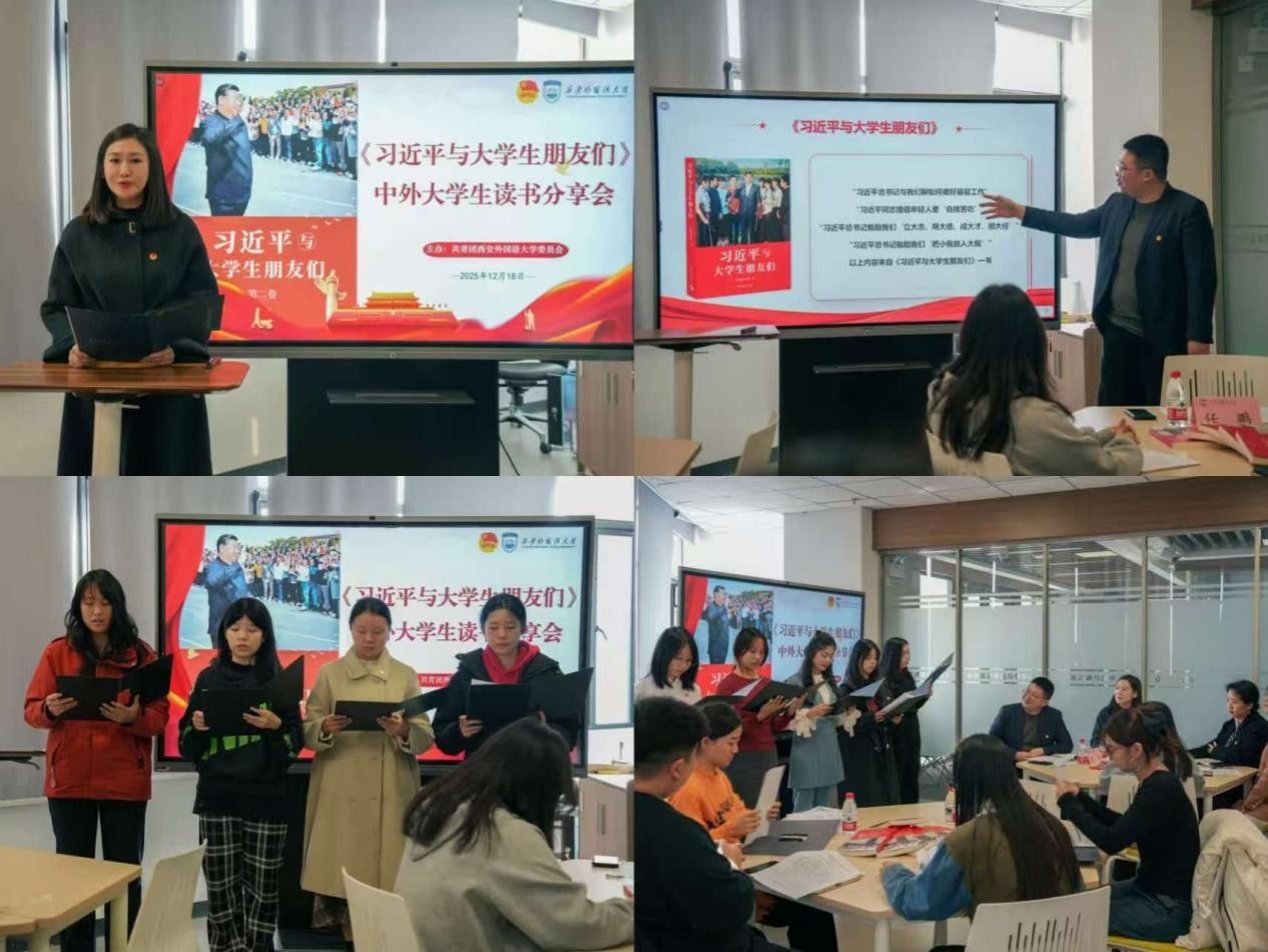 为深入学习贯彻习近平总书记关于青年工作的重要思想,搭建中外大学生思想交流与文化互鉴的平台,12月18日,我校在图书馆研讨室组织开展《习近平与大学生朋友们》中外大学生读书分享会。校团委副书记(主持工作)张晶、副书记梁鹿儿,马克思主义学院教师任鹏,以及各学院师生代表20余人参加活动。会议由梁鹿儿主持。