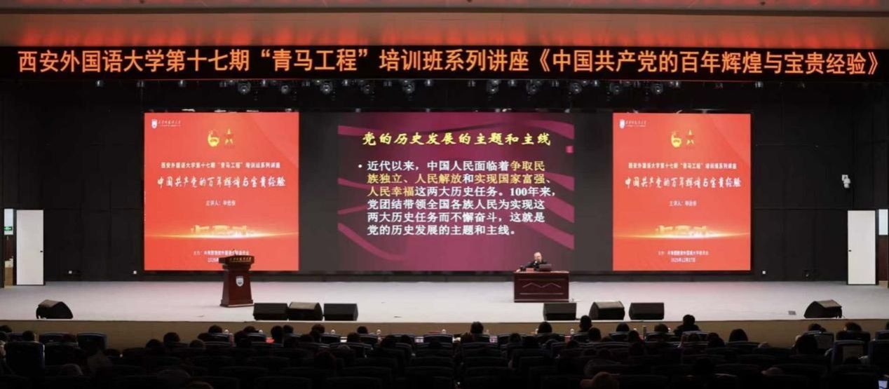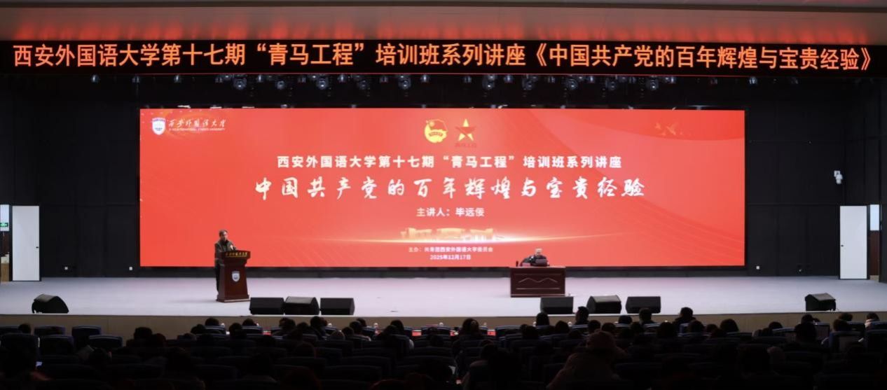 为深入学习党的百年奋斗重大成就和历史经验,扎实推进“青年马克思主义者培养工程”(青马工程)建设,12月17日,我校第十七期“青马工程”培训班专题讲座在长安校区启智楼报告厅顺利举办。中共陕西省委党校二级教授、延安精神研究团队首席专家毕远佞受邀主讲,以“中国共产党的百年辉煌与宝贵经验”为题,为全体青马学员带来了一堂深刻的思想淬炼课。校党委委员、副校长李京昊,校团委、学工部主要负责人,各二级学院党委副书记、辅导员,青马工程学员及各院学生代表共计千余人参加学习。讲座由李京昊主持。
