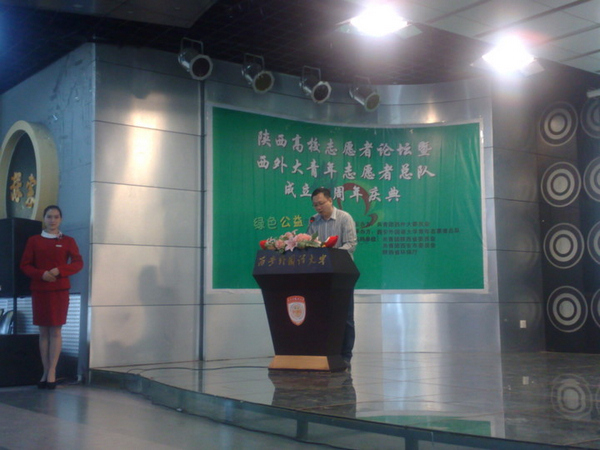 2012年6月2日,以“绿色公益,你我践行”为主题的“迎校庆·西外大青年志愿者总队成立十周年庆典暨陕西高校志愿者论坛”(以下简称“论坛”)在西安外国语大学圆满召开。