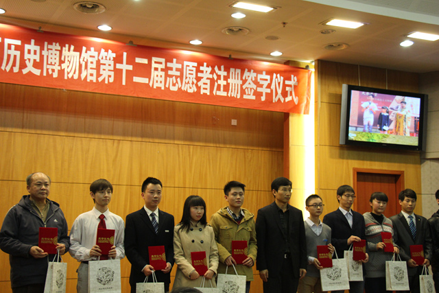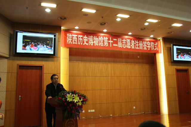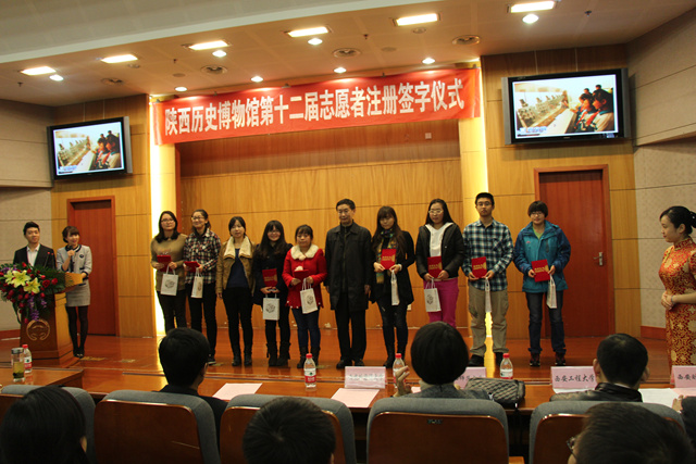 2013年11月24日上午,“陕西历史博物馆第十二届志愿者注册签字仪式”在陕博多功能报告厅举行。共有来自西安交通大学、西北大学、陕西师范大学和我校在内的15所高校的志愿者代表参加了此次活动。陕西历史博物馆党委书记罗文利、馆长成建正、副馆长裴建平以及各高校团委或主管院系领导作为嘉宾出席了本次注册仪式。我校汉学院党总支书记郭建平和团总支书记王倩应邀也出席了注册仪式。
