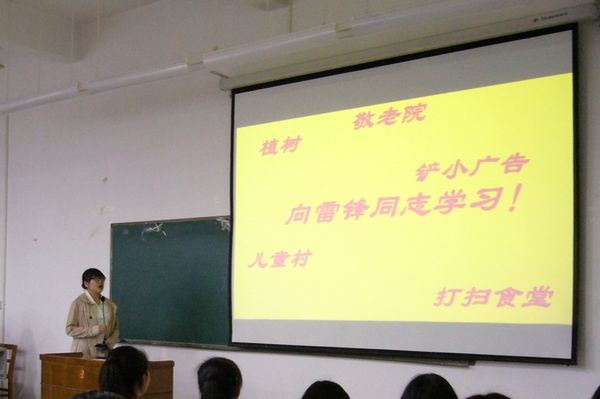 3月27日晚7点,经济金融学院团工委团总支在SD110教室举办“阳光三月,志愿经金”志愿服务主题活动总结大会。副院长兼党总支副书记李兵老师、辅导员贾超老师、学院团干部代表、“星光”志愿者队代表、2013级全体志愿者支队队员出席了总结大会。 会上,各班志愿者支队代表以PPT、音乐、图片等形式,展示了各支队在学雷锋活动月进行的野外植树、餐厅服务、擦小广告、观看雷锋主题电影等一系列活动,对雷锋精神进行了深刻的理解和思考。商英2班的志愿者代表宋佳音同学以朴实的语言传递了最真实的志愿感受:不论多么长的路途,多么艰难的环境,只要我们在做志愿服务,就一定会做好,做到最后。国贸3班志愿者代表隋明燕同学用自己独特的讲解风格和饱满的热情向大家传递出“志愿无小事,只怕有心人”的深刻内涵。国贸2班志愿者代表屈国栋同学,将开展志愿服务与继承优良传统美德,实现中国梦紧密联系起来,呼吁大家从身边小事做起,将雷锋精神一代代传承下去,一句“在家里,我们也会这样对待自己的爷爷奶奶么?”令人深思,发人深省。经济1班、经济2班、商英1班、法学班和国贸1班也从不同角度展示了本班分队在学雷锋活动中的收获,表达了对雷锋精神的理解和认识。 李兵老师在总结讲话中指出,善事无大小,只要每个人都切切实实将志愿服务落实到行动上,每个人就都是雷锋精神的传人,学雷锋活动月即将结束,但志愿服务活动永远不会结束,雷锋精神也会一直传承下去。经过评审,2013级国贸2班志愿者支队获得了本次活动的最高奖项——优秀奖,经济1班、商英2班和国贸3班支队获得积极奖,经济2班、商英1班、国贸1班和法学班支队获得活跃奖。李兵老师、贾超老师、团总支书记张文超、志愿者队副队长范蕾为表现优异的班级支队颁发了奖状并合影留念。 雷锋不仅是一个人,一个名字,更是一种精神,一种心甘情愿的服务他人、奉献社会的精神。通过学雷锋活动月里形式各样的志愿活动,同学们深切明白了雷锋精神就体现在我们点点滴滴的日常生活中。现场的志愿者们纷纷表示,今后一定会更加积极地发扬雷锋精神,广泛参与各类志愿服务活动,让奉献之花开遍校园,让志愿之光温暖人间!
