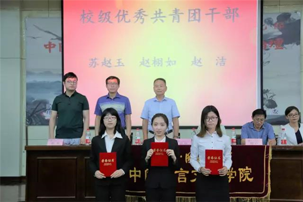 6月15日下午17:00,中国语言文学学院在行政楼报告厅举行了2016-2017学年中文学院五四评优表彰大会暨第十届团学干部聘书发放仪式。中文学院党委书记王毅老师,副院长董佳、庞晨光老师,学院教师邓艮老师,学工办主任、团工委书记乔燕老师,14级辅导员王瑞老师,16级辅导员张萌老师以及办公室主任白澍老师出席了本次大会。大会由中文学院团工委副书记王可心主持,获表彰的先进集体代表和个人参加此次大会。